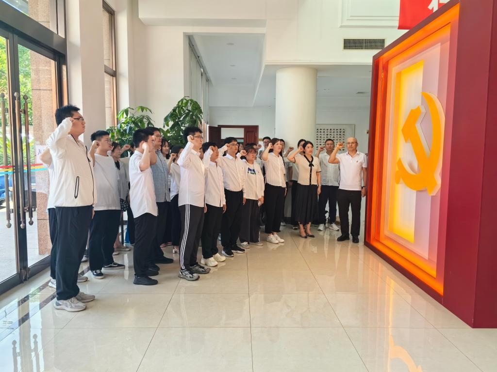 参观结束后,在场全体师生党员重温入党誓词,进一步增强纪律规矩意识,明确“红线”“戒尺”,永葆清正廉洁本色。